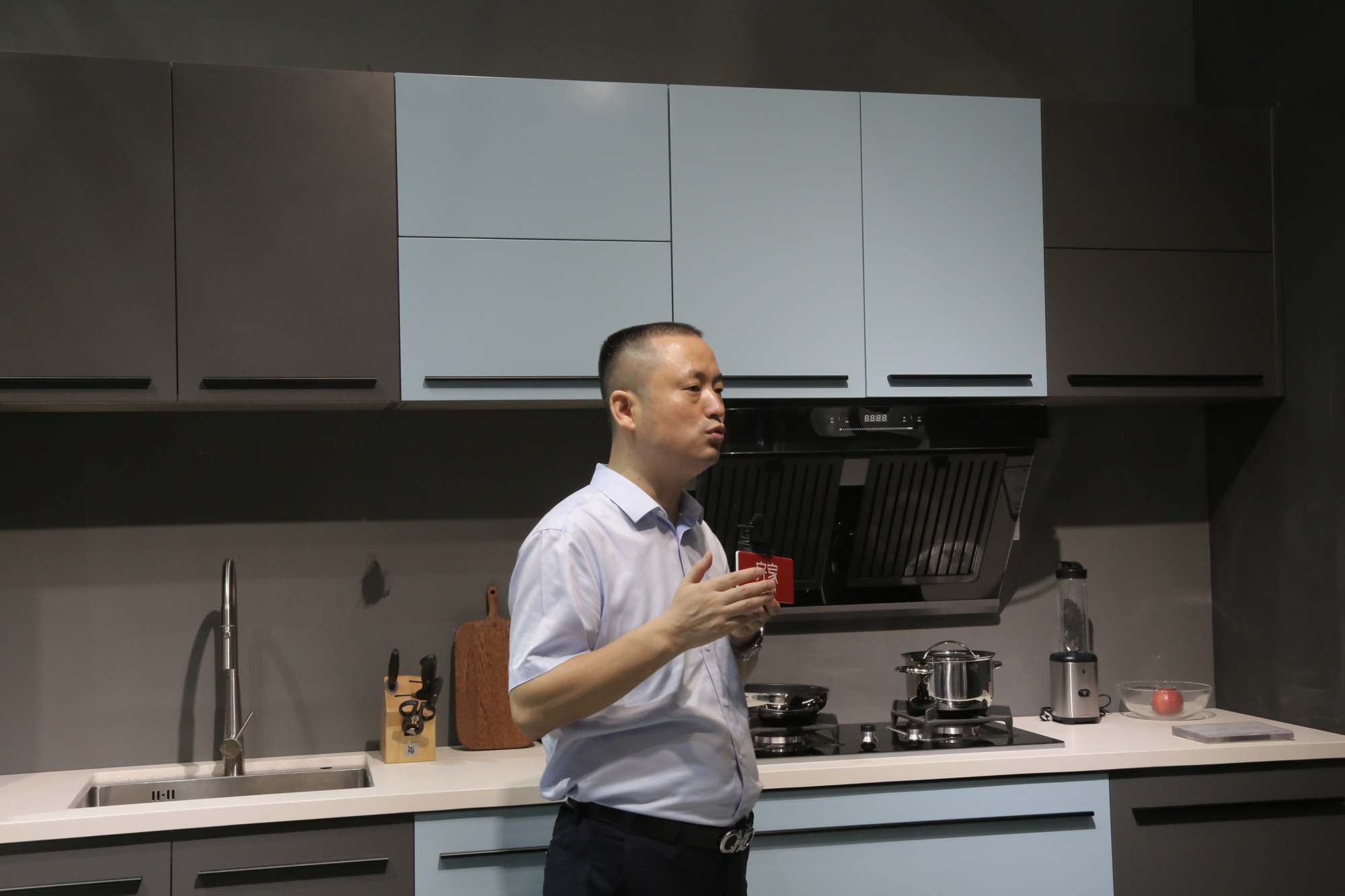 22日下午,深家協精裝研究院院長關永康先生聯合一兜糖主播,對展會的優秀展商進行了一場“探展”直播活動。直播中,關院長向大家推薦了庫靈圖的前置油煙分離煙機,以及無需開孔的超薄平板燃氣灶,為開放式廚房,提供了有效的解決方案。