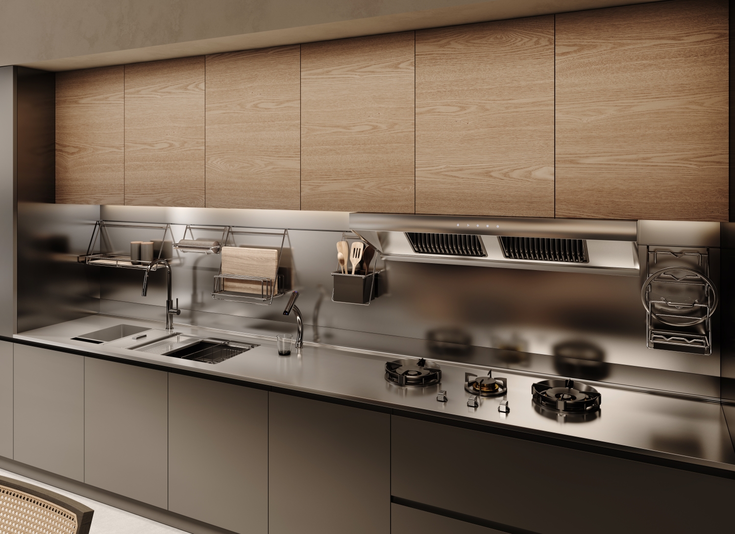 Clowzer「克洛茲」 追尋去繁就簡卻不失有序規整的設計旋律,承載家庭的溫情紐帶。餐廚一體化的簡潔空間實現了廚房的實用性與設計藝術性的平衡,恰到好處的低調與高級,傾注著鋼材、石材、木材的多重碰撞而帶來的無限可能。